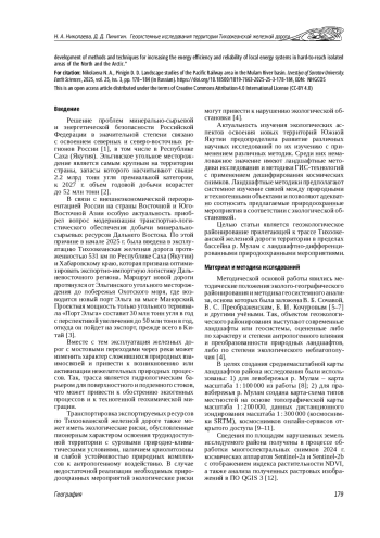 НИКОЛАЕВА Н. А., ПИНИГИН Д. Д. ГЕОСИСТЕМНЫЕ ИССЛЕДОВАНИЯ ТЕРРИТОРИИ ТИХООКЕАНСКОЙ ЖЕЛЕЗНОЙ ДОРОГИ В БАССЕЙНЕ Р. МУЛАМ // ИЗВЕСТИЯ САРАТОВСКОГО УНИВЕРСИТЕТА. НОВАЯ СЕРИЯ. СЕРИЯ НАУКИ О ЗЕМЛЕ. 2025. Т. 25 № 3