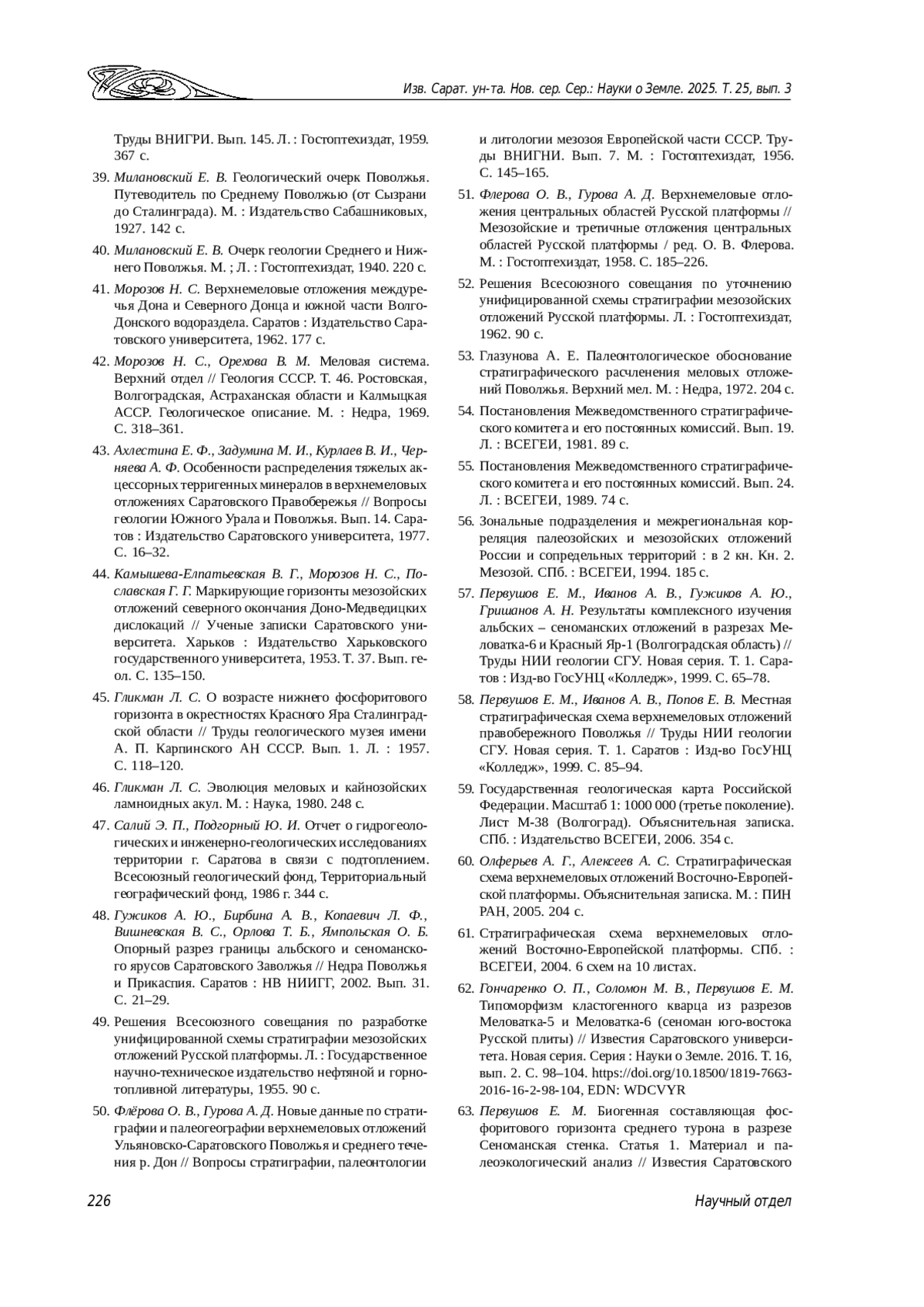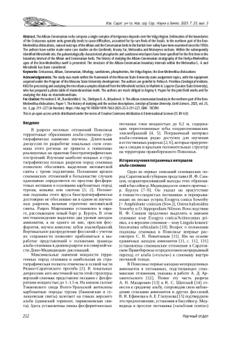 Статья: ГРАНИЦА АЛЬБА И СЕНОМАНА В СЕВЕРНОЙ ЧАСТИ ДОНО-МЕДВЕДИЦКИХ ДИСЛОКАЦИЙ. СТАТЬЯ 1. ИСТОРИЯ ИЗУЧЕНИЯ И ОПИСАНИЕ РАЗРЕЗОВ (2025)