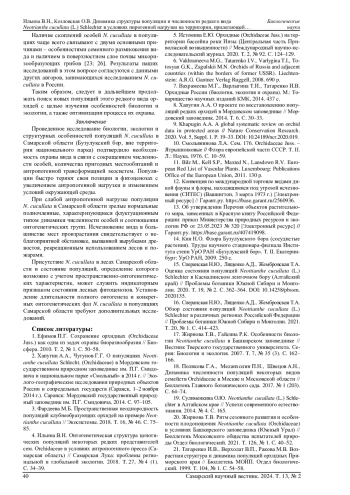 35. Ilyina V.N., Senator S.A., Mitroshenkova A.E., Kozlovskaya O.V. Peculiarities of the Neottianthe cucullata population structure under industrial loads (Samara Oblast) // Sustainable Development: Agriculture, Energy and Ecology: III international conference Vol. 3184, iss. 1. DOI: 10.1063/5.0212015