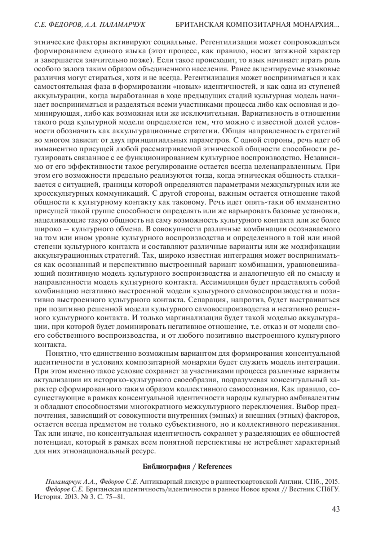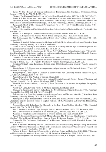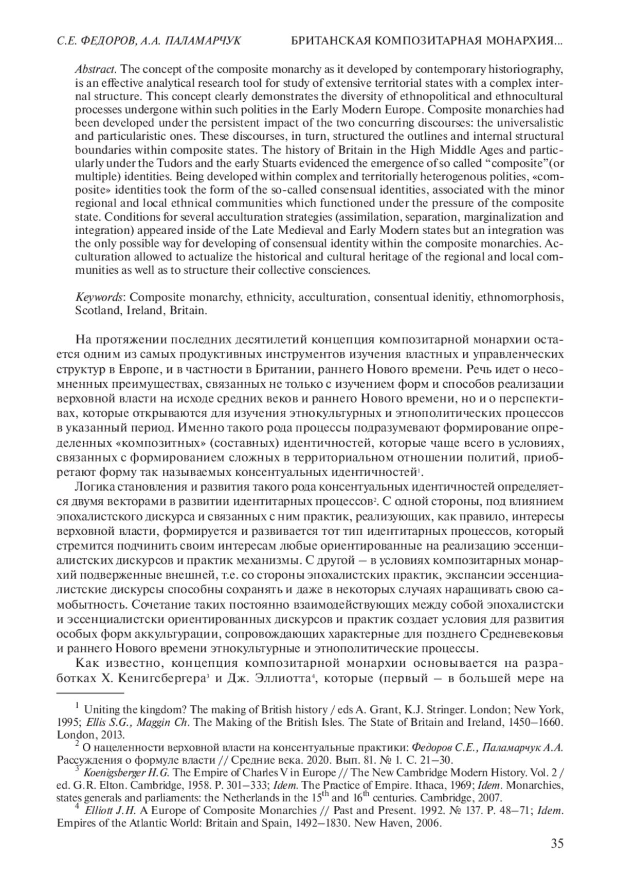 ПАЛАМАРЧУК А. А., ФЕДОРОВ С. Е. БРИТАНСКАЯ КОМПОЗИТАРНАЯ МОНАРХИЯ: ВЕРХОВНАЯ ВЛАСТЬ И ЭТНОКУЛЬТУРНЫЕ ПРОЦЕССЫ // НОВАЯ И НОВЕЙШАЯ ИСТОРИЯ. 2022. № 5