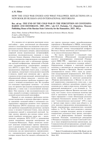 3. Филитов А.М. Конец холодной войны и распад СССР. Проблема закономерности и альтернативности // Историческое пространство. Проблемы истории стран СНГ. 2011. С. 245-254.