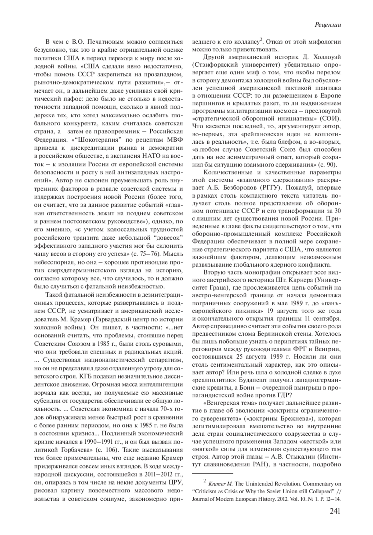 13. Kramer M. The Unintended Revolution. Commentary on “Criticism as Crisis or Why the Soviet Union still Collapsed” // Journal of Modern European History. 2012. Vol. 10. № 1. P. 5-18. EDN: WRSFLL