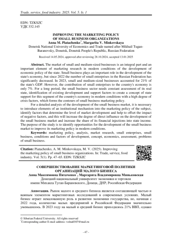 16. Пятаченко, А. М. Усовершенствование элементов институционального механизма развития малого бизнеса [Текст] // Исторические, культурные и социально- экономические векторы интеграции Донбасса в Российскую Федерацию: Концепции и механизмы молодых ученых: коллективная монография / Б. Ю. Байда. В. О. Бессарабов, Л. Н. Браганцева [и др.]; под ред. Е. М. Азарян. – Ростов-на-Дону: Манускрипт, 2023. – С. 251–272.