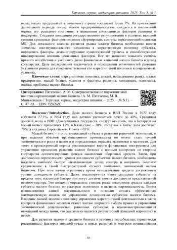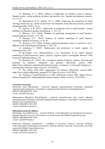 22. Пирская, Е. В. Особенности современного маркетинга предприятий малого бизнеса [Текст] / Е. В. Пирская // Современная экономика. – 2019. – № 6. – С. 54–62.