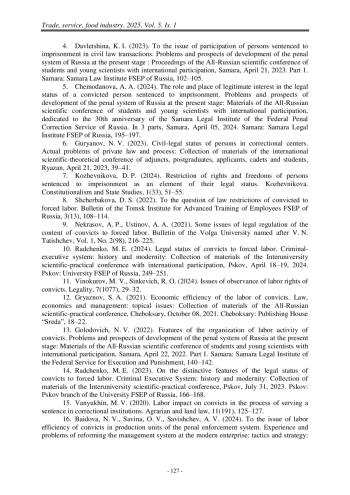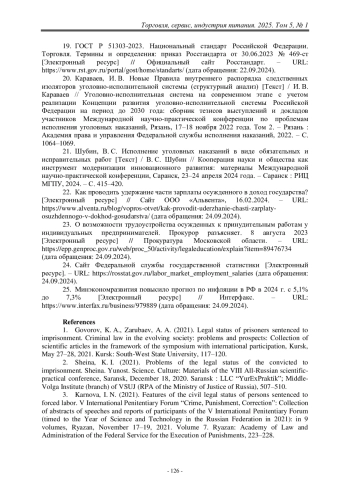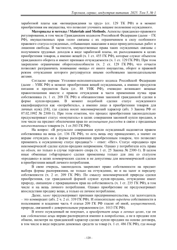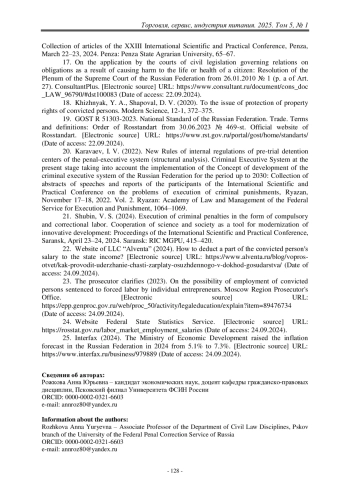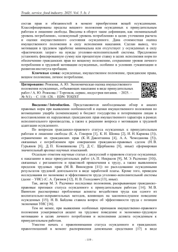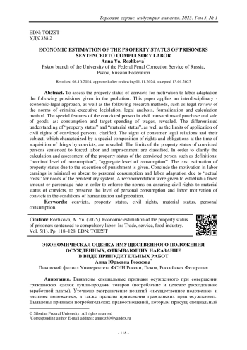 РОЖКОВА А. Ю. ЭКОНОМИЧЕСКАЯ ОЦЕНКА ИМУЩЕСТВЕННОГО ПОЛОЖЕНИЯ ОСУЖДЕННЫХ, ОТБЫВАЮЩИХ НАКАЗАНИЕ В ВИДЕ ПРИНУДИТЕЛЬНЫХ РАБОТ // ТОРГОВЛЯ, СЕРВИС, ИНДУСТРИЯ ПИТАНИЯ. 2025. № 1, ТОМ 5