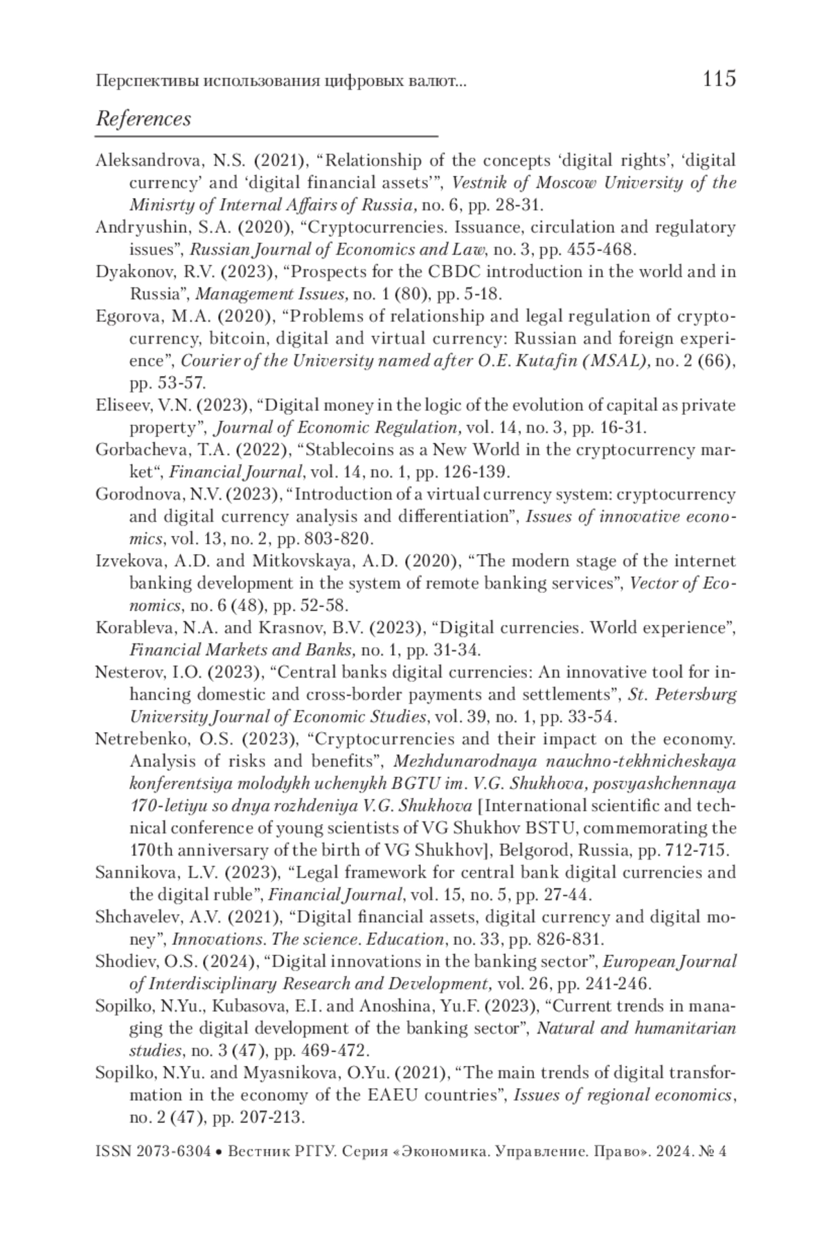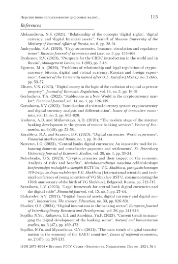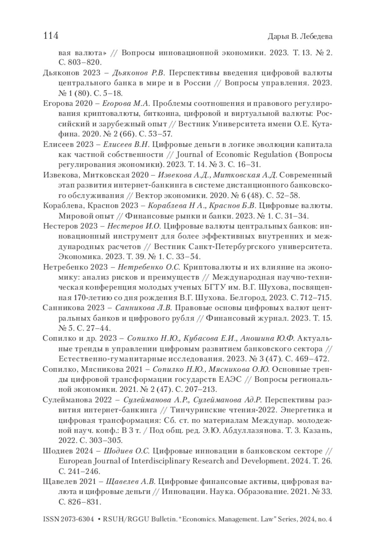 10. Нестеров 2023 - Нестеров И.О. Цифровые валюты центральных банков: инновационный инструмент для более эффективных внутренних и международных расчетов // Вестник Санкт-Петербургского университета. Экономика. 2023. Т. 39. № 1. С. 33-54.