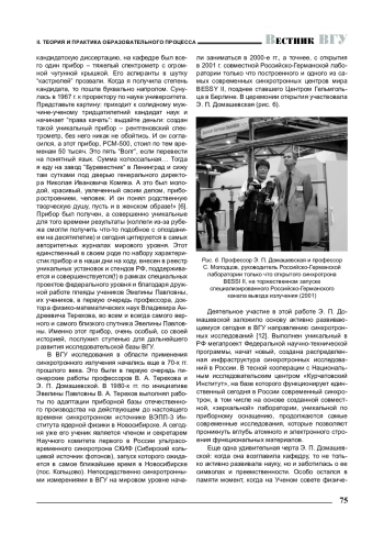 Деятельное участие в этой работе Э. П. Домашевской заложило основу активно развивающемуся сегодня в ВГУ направлению синхротронных исследований [12]. Выполнен уникальный в РФ мегапроект Федеральной научно-технической программы, начат новый, создана распределенная инфраструктура синхротронных исследований в России. В тесной кооперации с Национальным исследовательским центром «Курчатовский Институт», на базе которого функционирует единственный сегодня в России современный синхротрон, в том числе на основе созданной совместной, «зеркальной» лаборатории, уникальной по приборному оснащению, продолжаются самые современные исследования, которые позволяют проникнуть вглубь атомного и электронного строения функциональных материалов.