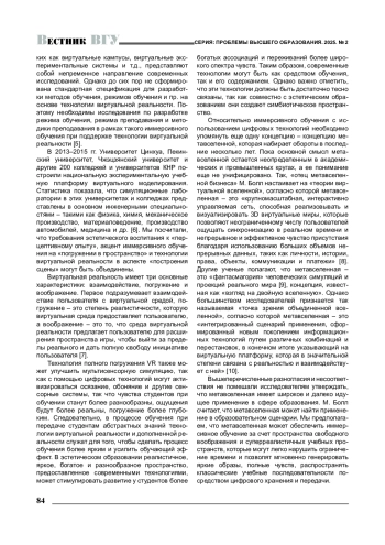 В 2013–2015 гг. Университет Цинхуа, Пекинский университет, Чжэцзянский университет и другие 200 колледжей и университетов КНР построили национальную экспериментальную учебную платформу виртуального моделирования. Статистика показала, что симуляционные лаборатории в этих университетах и колледжах представлены в основном инженерными специальностями – такими как физика, химия, механическое производство, материаловедение, производство автомобилей, медицина и др. [6]. Мы посчитали, что требования эстетического воспитания к «перцептивному опыту», акцент иммерсивного обучения на «погружении в пространство» и технологии виртуальной реальности в аспекте «построения сцены» могут быть объединены.