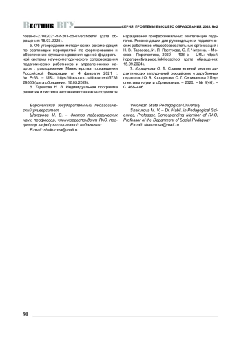 ШАКУРОВА М. В. АКТУАЛЬНЫЙ ОТЕЧЕСТВЕННЫЙ ОПЫТ РАБОТЫ С ПРОФЕССИОНАЛЬНЫМИ ДЕФИЦИТАМИ ПЕДАГОГОВ // ВЕСТНИК ВОРОНЕЖСКОГО ГОСУДАРСТВЕННОГО УНИВЕРСИТЕТА. СЕРИЯ: ПРОБЛЕМЫ ВЫСШЕГО ОБРАЗОВАНИЯ. 2025. № 2