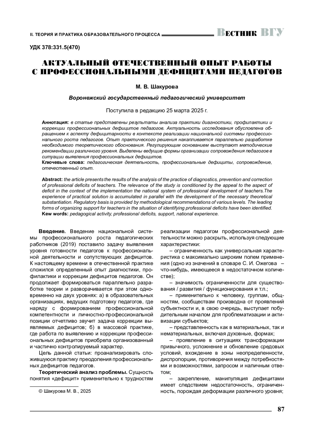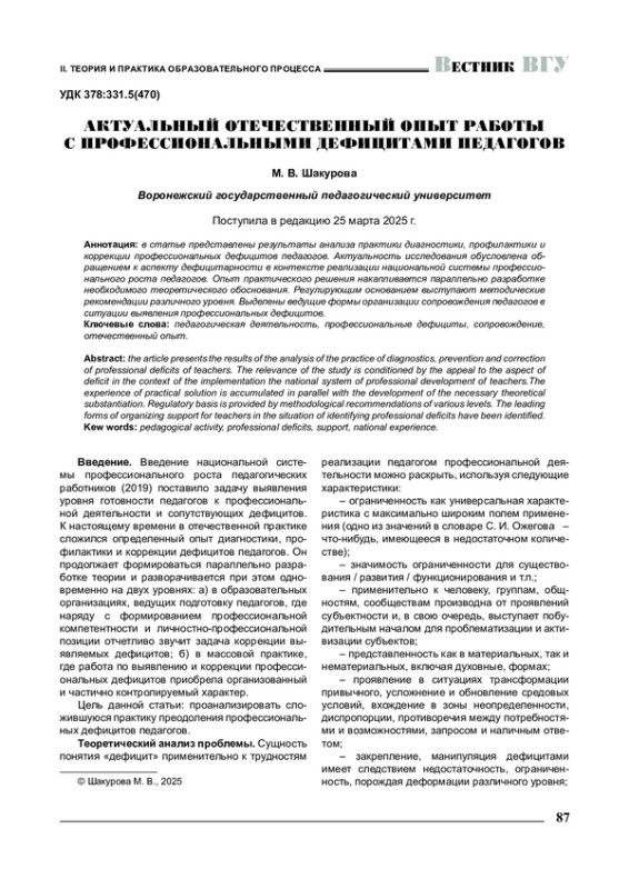 Статья: АКТУАЛЬНЫЙ ОТЕЧЕСТВЕННЫЙ ОПЫТ РАБОТЫ С ПРОФЕССИОНАЛЬНЫМИ ДЕФИЦИТАМИ ПЕДАГОГОВ (2025)
