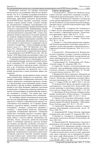 2. Стенин С.В. Ценностное отношение к человеку как основа дисциплинированности личности курсанта // Известия Балтийской государственной академии рыбопромыслового флота: психолого-педагогические науки. 2020. № 1 (51). С. 256-259. EDN: XRPVOQ