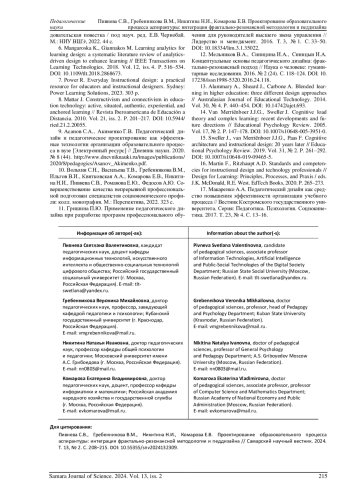 5. Ефимова Е.А., Корешникова Ю.Н., Давлатова М.А. Педагогический дизайн: российская и зарубежная исследовательская повестка / под науч. ред. Е.В. Чернобай. М.: НИУ ВШЭ, 2022. 44 с.