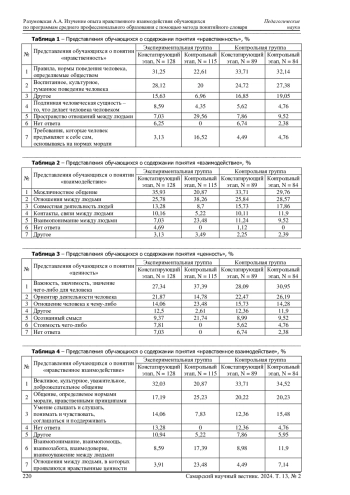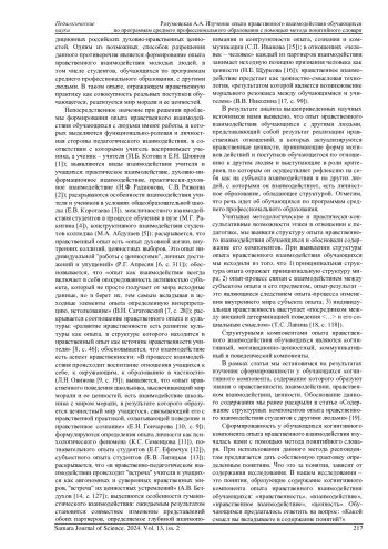 19. Разумовская А.А. Содержание структурных компонентов опыта нравственного взаимодействия студентов с другими людьми // Вестник Тверского государственного университета. Серия: Педагогика и психология. 2022. № 3 (60). С. 103-117. DOI: 10.26456/vtpsyped/2022.3.103 EDN: MVBEPW