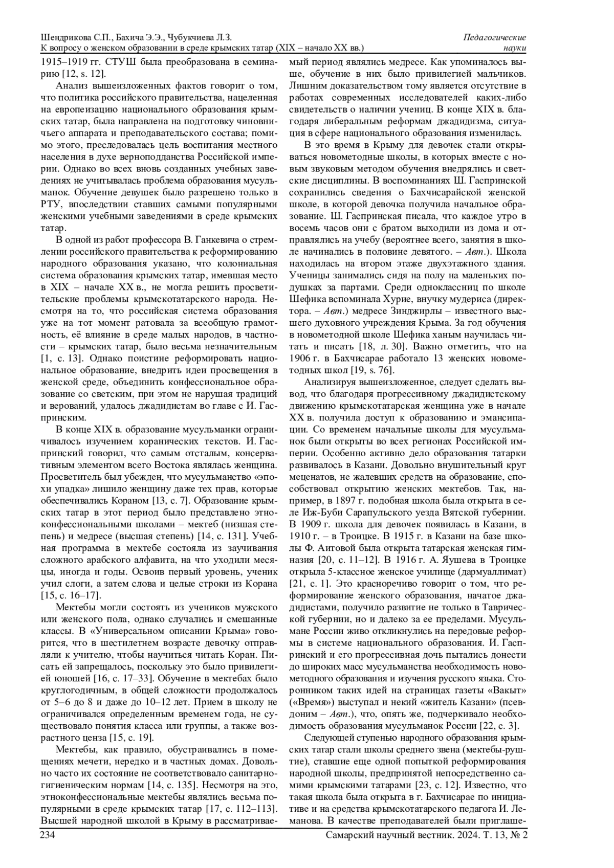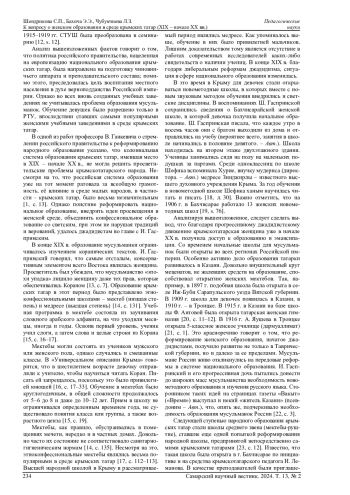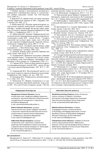 17. Чубукчиева Л.З. Шефика Гаспринская и ее деятельность в народном образовании крымских татар в конце XIX - 20-е годы XX века: историогр. экскурс // XII Таврические научные чтения: сб. мат-лов: в 2 ч. Ч. 2 / ред., сост. Е.Б. Вишневская. Симферополь, 2012. С. 112-117.
