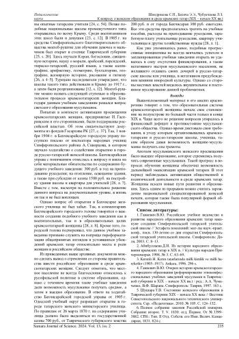 27. Чубукчиева Л.З. К вопросу о крымскотатарском женском образовании в начале XX в. // IV научные чтения памяти Усеина Боданинского: тез. докл. и сообщ. междунар. науч. конф. (Бахчисарай, 17-19 октября 2012 г.). Бахчисарай, 2012. С. 37.