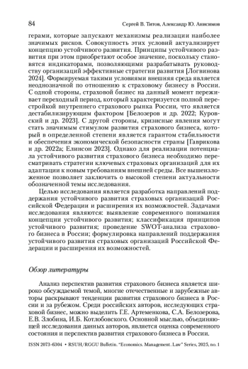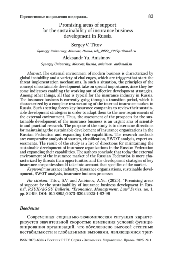 Несмотря на значительный интерес к теме устойчивого развития страхового бизнеса, на данный момент не определены направления поддержания устойчивого развития страховых организаций Российской Федерации и расширения их возможностей, что требует активизации научных исследований в данном направлении.