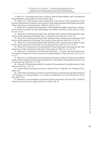 Ключевые фразы: саратовская научная школа конституционного права, научные труды профессора бс эбзеева, КОНСТИТУЦИЯ РФ, ПРАВА И СВОБОДЫ ЧЕЛОВЕКА И ГРАЖДАНИНА, КОНСТИТУЦИОНАЛИЗМ, государство, ВЛАСТЬ, ФЕДЕРАЛИЗМ