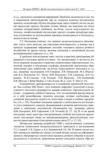 16. Воног, В.В. Цифровая трансформация системы иноязычной подготовки в процессе обучения студентов инженерного профиля / В.В. Воног // Вестник Перм. нац. исслед. политехн. ун-та. Проблемы языкознания и педагогики. - 2024. - № 2. - С. 150-162. EDN: EXSAOO