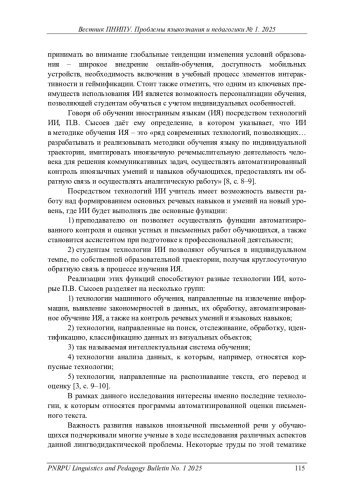 8. Сысоев, П.В. Технологии искусственного интеллекта в обучении иностранному языку / П.В. Сысоев // Иностр. языки в школе. - 2023. - № 3. - С. 6-16. EDN: QFMZHW