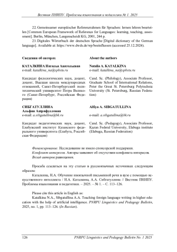 5. Титова, С.В. Технологические решения на базе искусственного интеллекта в обучении иностранным языкам / С.В. Титова // Вестник Моск. ун-та. Сер. 19. Лингвистика и межкультурная коммуникация. - 2024. - № 3 - С. 18-37. EDN: OWSQVG