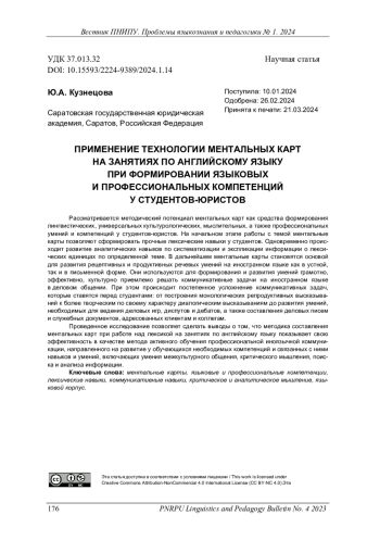 4. Щипицина, Л.Ю. Использование ментальных карт для развития лексического навыка у студентов вуза: параметры создания и критерии оценивания / Л.Ю. Щипицина // Ярослав. пед. вестник. - 2023. - № 2 (131). - С. 73-80. EDN: MKOYDO
