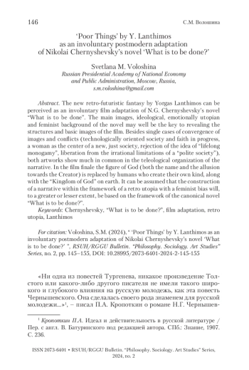 Статья: «Бедные-несчастные» Й. Лантимоса как невольная постмодернистская адаптация романа Н. Г. Чернышевского «Что делать?» (2024)