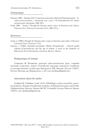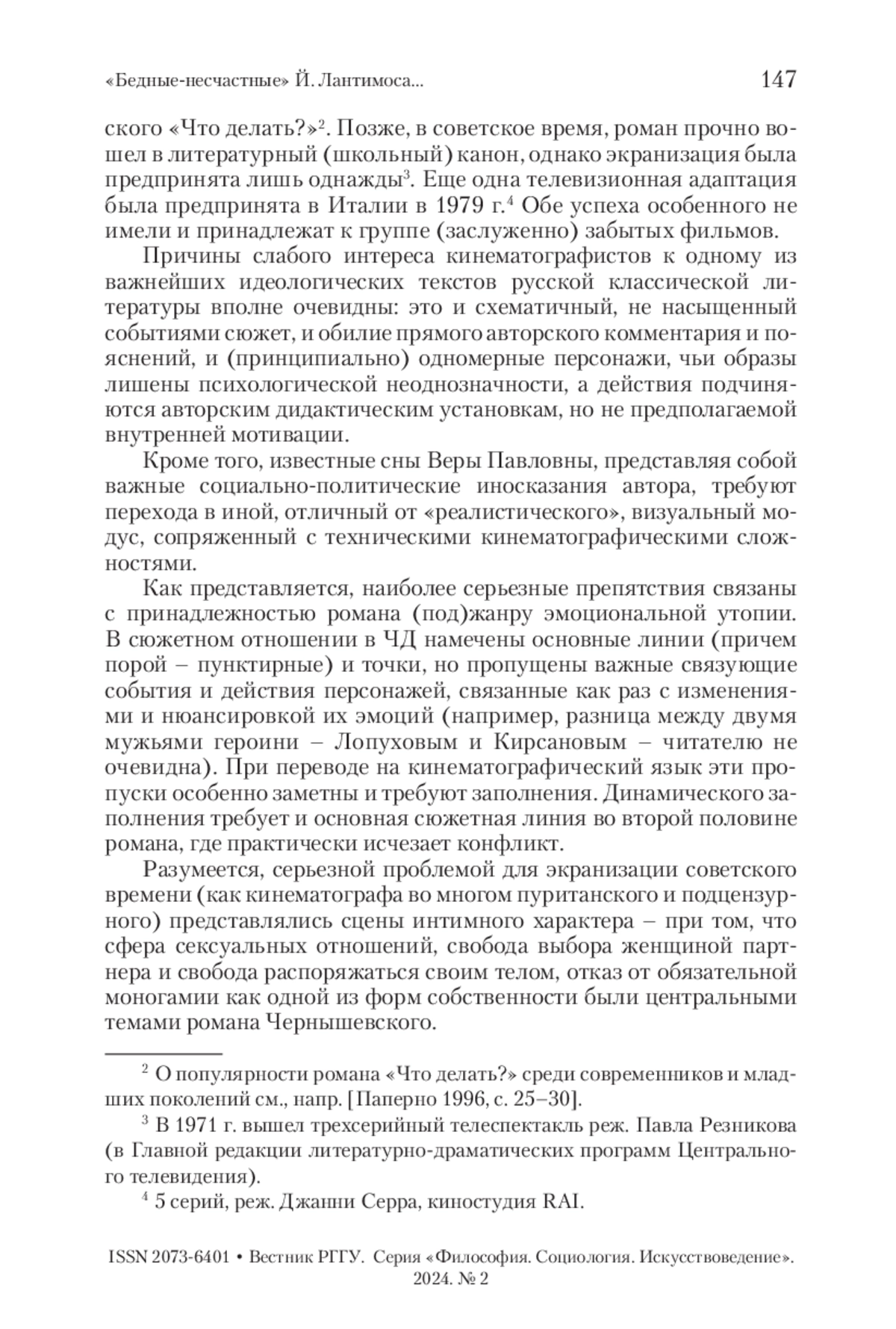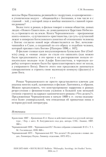 ВОЛОШИНА С. М. «БЕДНЫЕ-НЕСЧАСТНЫЕ» Й. ЛАНТИМОСА КАК НЕВОЛЬНАЯ ПОСТМОДЕРНИСТСКАЯ АДАПТАЦИЯ РОМАНА Н. Г. ЧЕРНЫШЕВСКОГО «ЧТО ДЕЛАТЬ?» // ВЕСТНИК РГГУ. СЕРИЯ: ФИЛОСОФИЯ. СОЦИОЛОГИЯ. ИСКУССТВОВЕДЕНИЕ. 2024. № 2