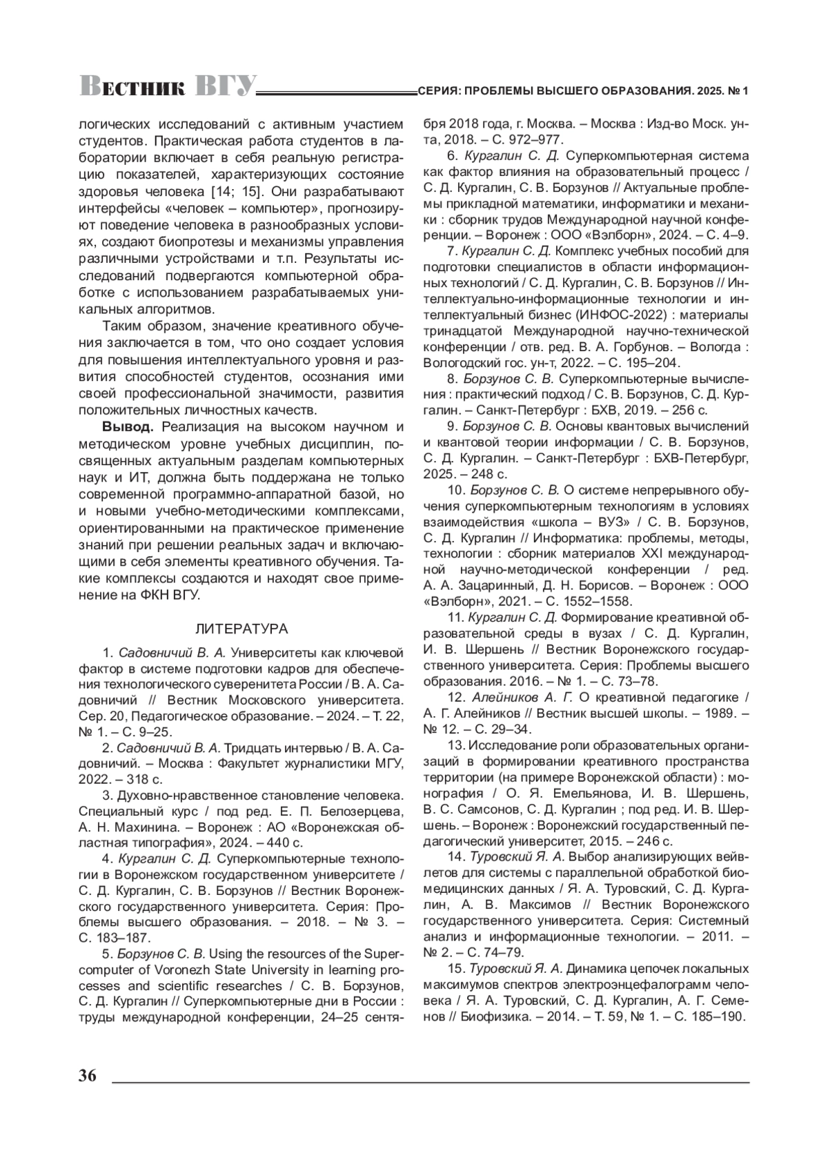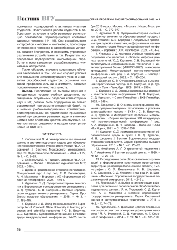 Журнал: ВЕСТНИК ВОРОНЕЖСКОГО ГОСУДАРСТВЕННОГО УНИВЕРСИТЕТА. СЕРИЯ: ПРОБЛЕМЫ ВЫСШЕГО ОБРАЗОВАНИЯ
