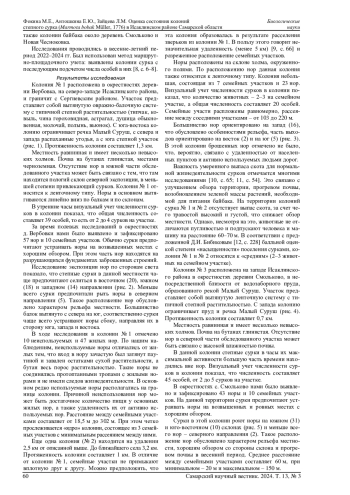 В статье представлены данные по исследованию колоний сурка байбака ( Marmota bobak, Muller, 1776) в весенний период 2022-2024 годов на общедоступных территориях, находящихся в Исаклинском районе Самарской области. Изучались колонии сурка, расположенные в окрестностях деревни Вербовка, их координаты ранее не отмечались исследователями, а также колонии байбака около деревень Смольково и Новая Чесноковка. Рассмотрена особенность топографии нор в данных колониях. Большая часть нор расположена на холмах и в балках западной, юго-западной, юго-восточной и южной экспозиции. Изучены особенности расположения семейных участков в данных колониях степного сурка и вероятные пути дальнейшего распространения особей. Проанализирован уровень тревожности степного сурка в четырех колониях и их зависимость от наличия асфальтированной дороги, водоема, следов браконьерства и других следов деятельности человека. Выявлена связь поведения степных сурков с наличием выпаса скота в непосредственной близости от колоний. Было подсчитано среднее число особей степного сурка в исследуемых колониях и сравнение численности с региональным коэффициентом, установленным в 2009 году.