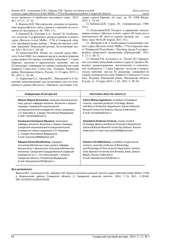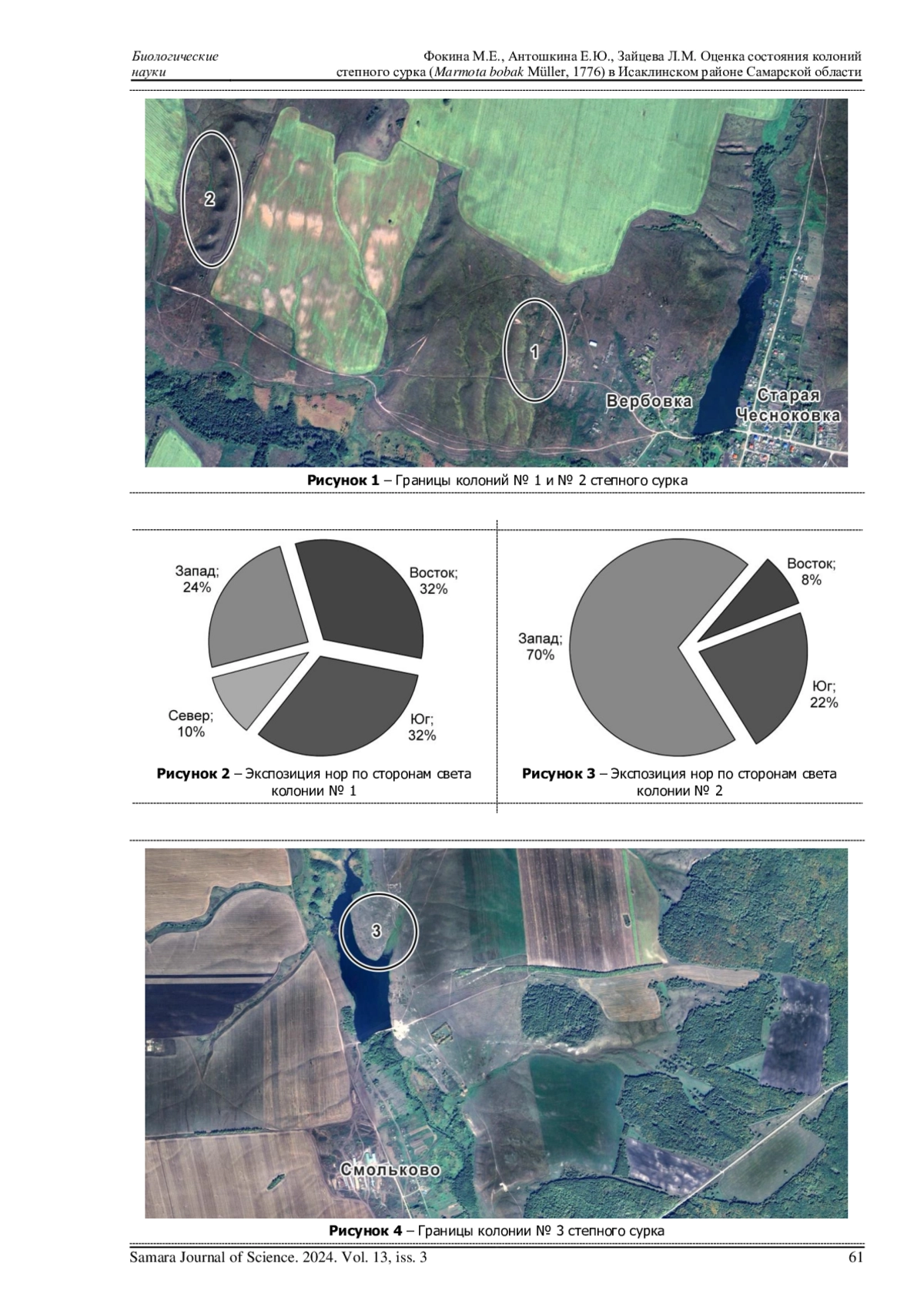 ФОКИНА М. Е., АНТОШКИНА Е. Ю., ЗАЙЦЕВА Л. М. ОЦЕНКА СОСТОЯНИЯ КОЛОНИЙ СТЕПНОГО СУРКА (MARMOTA BOBAK MÜLLER, 1776) В ИСАКЛИНСКОМ РАЙОНЕ САМАРСКОЙ ОБЛАСТИ // САМАРСКИЙ НАУЧНЫЙ ВЕСТНИК. 2024. ТОМ 13, № 3