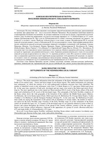 18. Морозов В.В. Керамика опорных памятников камской неолитической культуры в Нижнем Прикамье // Археология евразийских степей. 2020. № 3. С. 330-353. EDN: MNUMNG