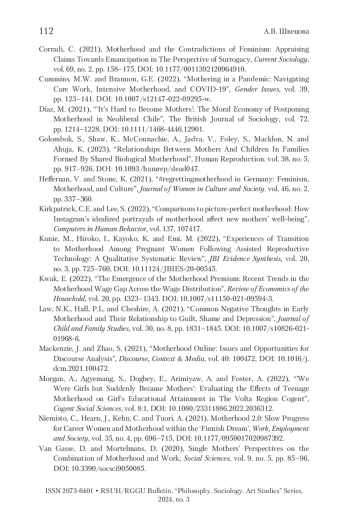 2. Corradi 2021 - Corradi C. Motherhood And the Contradictions of Feminism: Appraising Claims Towards Emancipation in The Perspective of Surrogacy // Current Sociology. 2021. № 69 (2). P. 158-175. https://doi.org/10.1177/0011392120964910.