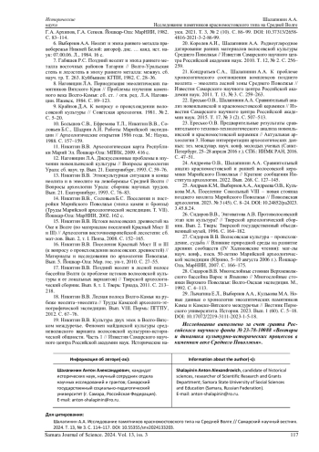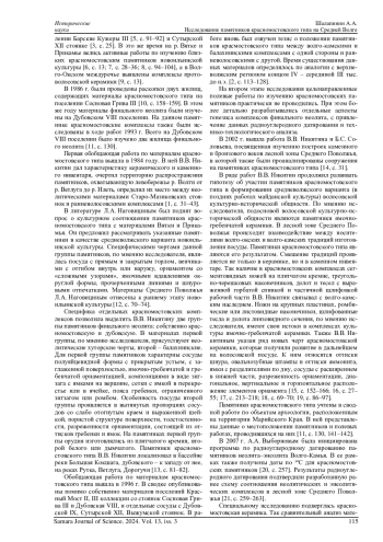 24. Андреева О.В., Шалапинин А.А. Сравнительный анализ красномостовской и ранней волосовской керамики Марийского Поволжья // Краткие сообщения Института археологии. 2022. Вып. 268. С. 127-145. EDN: WNSIBF