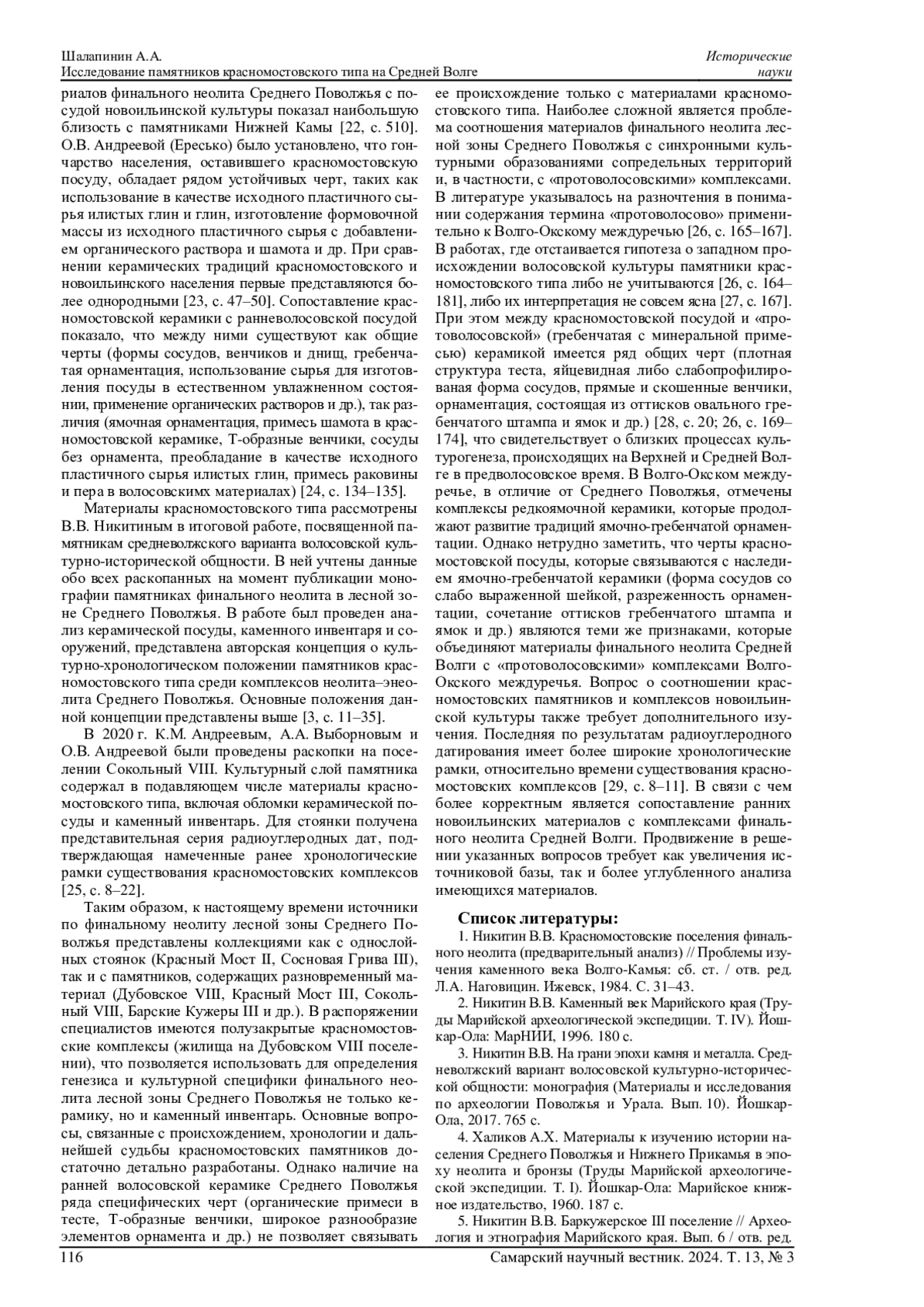 16. Никитин В.В. Поселения Красный Мост II и III (к вопросу о происхождении волосовских древностей) // Материалы и исследования по археологии Поволжья. Вып. 5. Йошкар-Ола: Мар. гос. ун-т, 2010. С. 27-55.