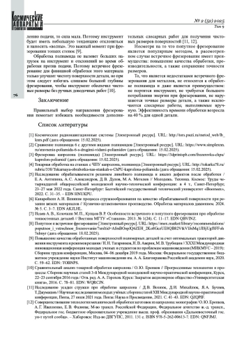 [8] Попутное и встречное фрезерование [Электронный ресурс]. URL: https://enex.market/library/ recommendations/ poputnoe_i_vstrechnoe_frezerovanie/?srsltid=AfmBOoplQ6ZEH_2Ko8GczUE8QB82VtkVlJnMq1JI8jUgf8FFoh 7nlmyr (дата обращения: 18.02.2025).