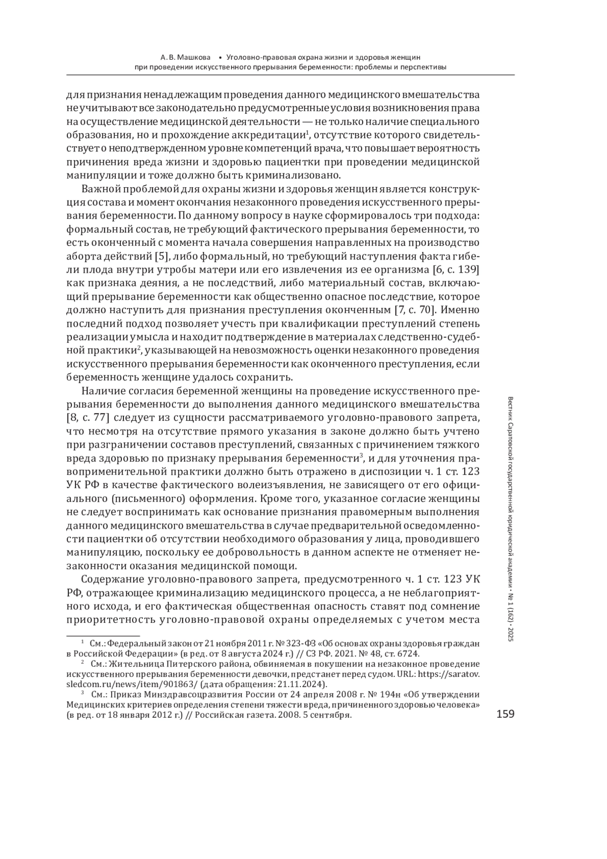 1. Мустафаев С. Э. Уголовно наказуемое прерывание беременности: проблемные аспекты уголовного законодательства // Вестник Московского университета. Сер. 11, Право. 2015. № 1. С. 110-118.