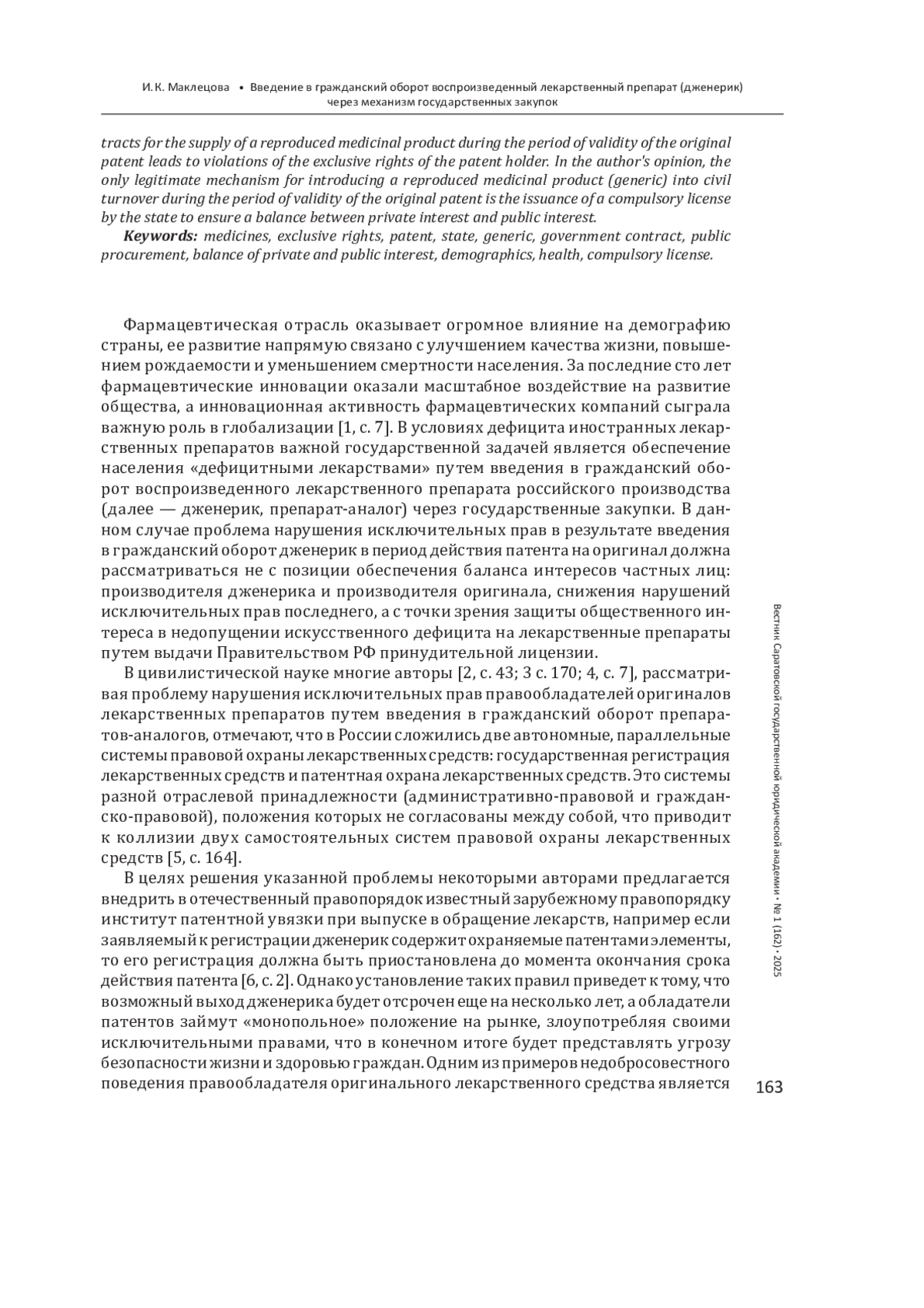 2. Давыдов Ю. Г. Две параллельные системы правовой охраны лекарственных препаратов в России // Социальное и пенсионное право. 2018. № 3. С. 42-46. EDN: XVYIHJ