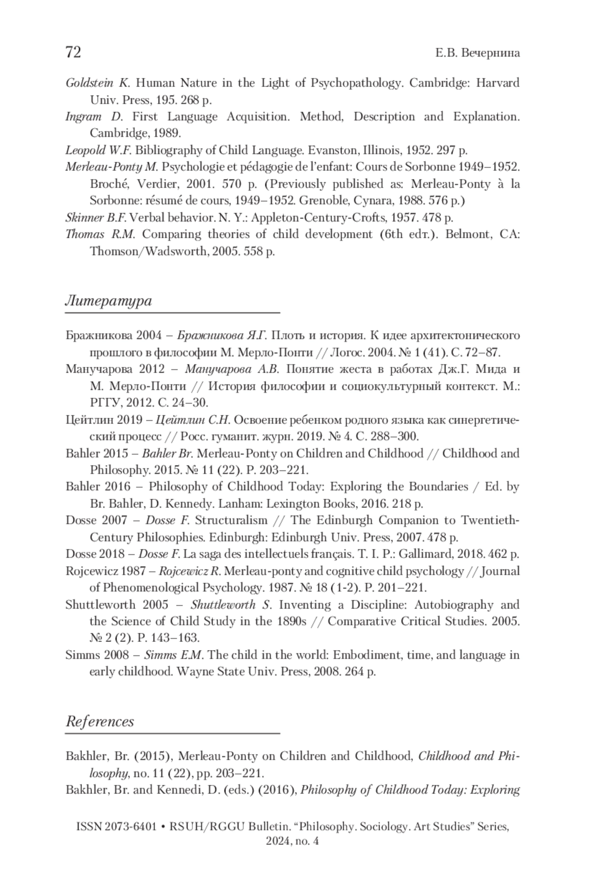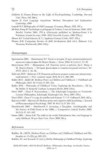 4. Bahler 2015 - Bahler Br. Merleau-Ponty on Children and Childhood // Childhood and Philosophy. 2015. № 11 (22). P. 203-221.