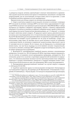 Выводы: запрет в имеющемся виде не всегда препятствует реализации притязания граждан на посмертную репродукцию, поскольку оценивается как пробел в праве, необходима всесторонняя экспертиза возможности реализации такого притязания и устранение правовой неопределенности.