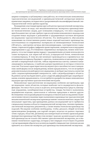 4. Кудинова Н.С., Сухарев А. Г. “Криминалистические паспорта” как объекты для сравнительного исследования при производстве судебной механоскопической экспертизы производственно-технологических следов маркирования // Проблемы уголовного процесса, криминалистики и судебной экспертизы. 2023. № 2(22). С. 33-34. EDN: HBOLYZ