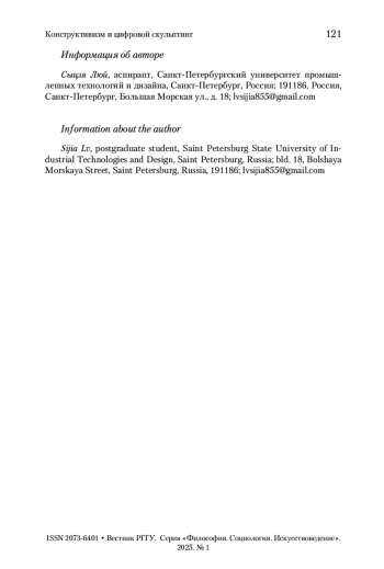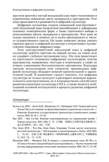 2. Ван 2021 - Ван Си-Ци. Влияние композиционизма на современный дизайн / Оценка искусства, 2021 (06): C. 57. 王司棋. 构成主义对现代设计的影响[C]. 设计艺术研究,2021 (06): 57页.