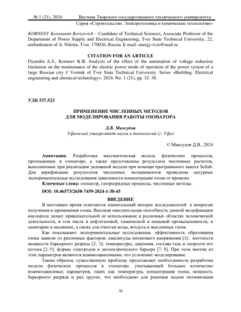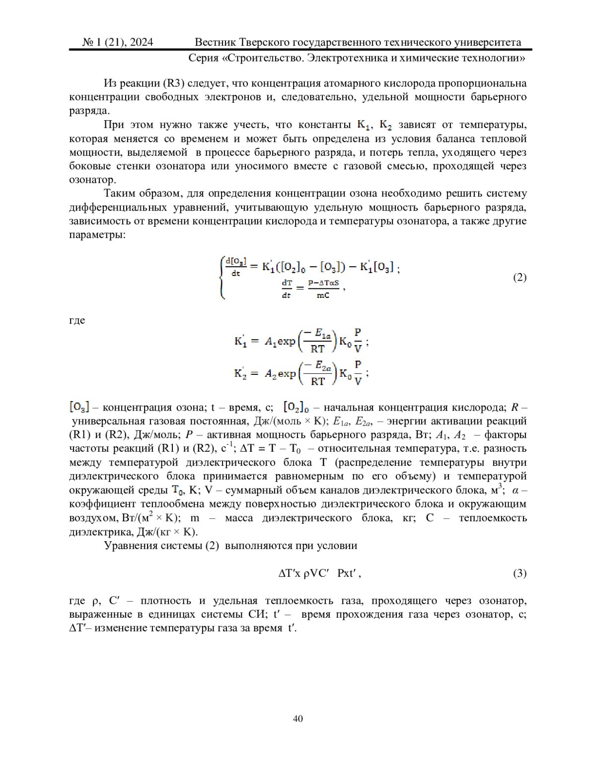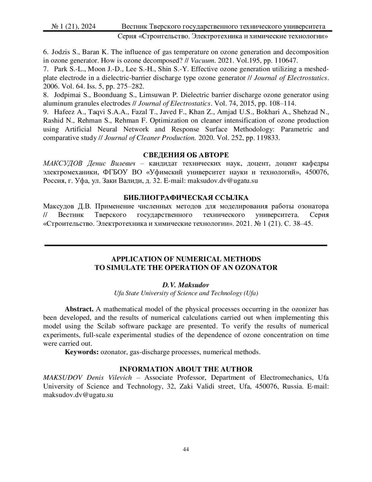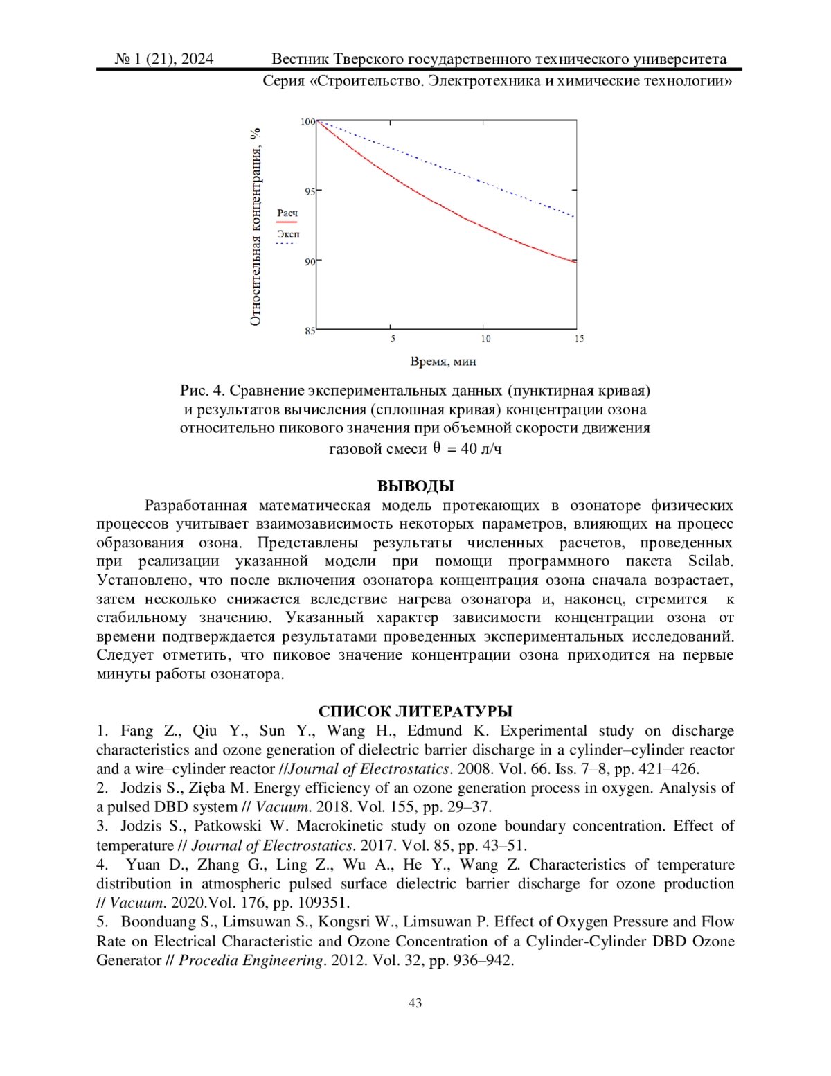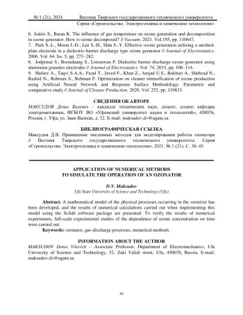 МАКСУДОВ Д. В. ПРИМЕНЕНИЕ ЧИСЛЕННЫХ МЕТОДОВ ДЛЯ МОДЕЛИРОВАНИЯ РАБОТЫ ОЗОНАТОРА // ВЕСТНИК ТВЕРСКОГО ГОСУДАРСТВЕННОГО ТЕХНИЧЕСКОГО УНИВЕРСИТЕТА. СЕРИЯ: СТРОИТЕЛЬСТВО. ЭЛЕКТРОТЕХНИКА И ХИМИЧЕСКИЕ ТЕХНОЛОГИИ. 2024. № 1 (21)