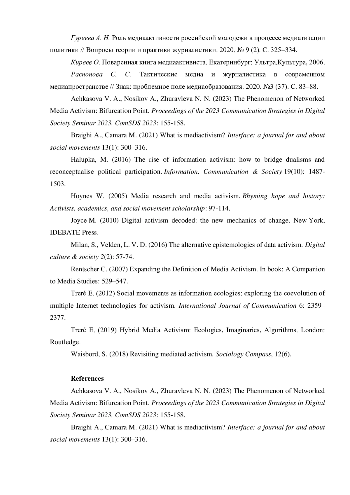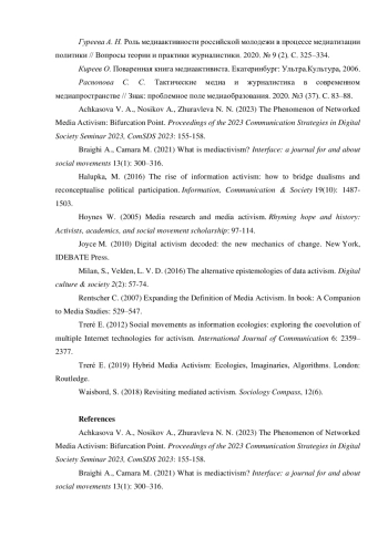 Статья: ТРАНСФОРМАЦИЯ ДЕФИНИЦИЙ МЕДИААКТИВИЗМА В ИССЛЕДОВАТЕЛЬСКОМ ДИСКУРСЕ (2025)