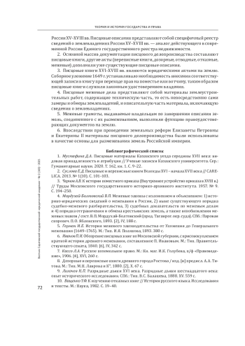 Статья: ПИСЦОВЫЕ КНИГИ ПОМЕСТНОГО ПРИКАЗА КАК ЮРИДИЧЕСКИЕ АКТЫ НА ЗЕМЛЮ РОССИИXVI-XVIII ВЕКОВ (ИСТОРИКО-ПРАВОВОЕ ИССЛЕДОВАНИЕ) (2025)