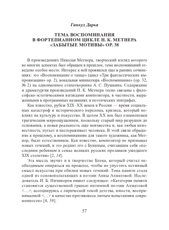 ГИНКУЛ Д. ТЕМА ВОСПОМИНАНИЯ В ФОРТЕПИАННОМ ЦИКЛЕ Н. К. МЕТНЕРА «ЗАБЫТЫЕ МОТИВЫ» OP. 38 // ИССЛЕДОВАНИЯ МОЛОДЫХ МУЗЫКОВЕДОВ. 2024. № 8