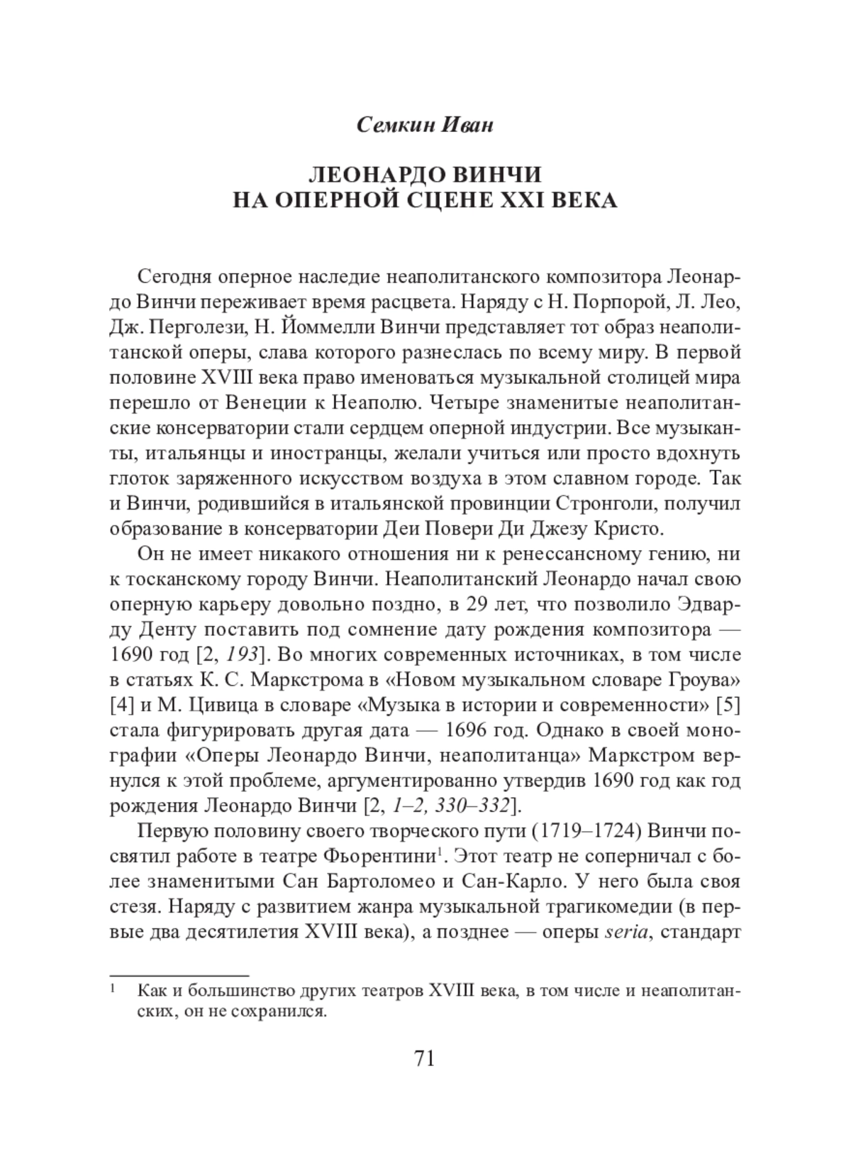 СЕМКИН И. ЛЕОНАРДО ВИНЧИ НА ОПЕРНОЙ СЦЕНЕ XXI ВЕКА // ИССЛЕДОВАНИЯ МОЛОДЫХ МУЗЫКОВЕДОВ. 2024. № 8