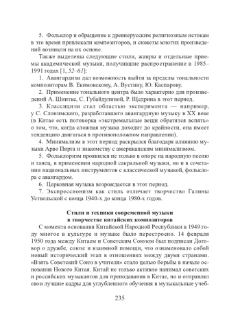 Начиная с 1960-х и до 1990-х годов во всем мире становились все более известными русские композиторы Эдисон Денисов, Альфред Шнитке, София Губайдулина, Родион Щедрин, Сергей Слонимский, Борис Чайковский, Борис Тищенко и другие. На творчество композиторов Китайской Народной Республики, с первых дней своего существования имевшей систему музыкального образования, в которой «Россия была учителем» [3, 5] оказали глубокое влияние музыкальные стили и жанры, а также идеи, сформулированные русскими композиторами. Чтобы понять особенности этого влияния, необходимо поставить вопрос об изучения и исследования современной русской музыки в китайском музыковедении. В настоящей статье предпринимается эта попытка. Рассмотрим некоторые аспекты общей проблемы изучения и исследования современной русской музыки в Китае.