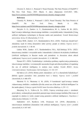 Для современной медиасферы принципиальным является вопрос о корреляции технологий искусственного интеллекта с человекоцентричностью журналистики, тема трансформации профессиональных ценностей, стандартов и этико-правовых норм. Целью статьи является изучение и обобщение проблем регламентации авторских прав, которые возникают в связи с применением технологий искусственного интеллекта для создания медиатекстов. Материал исследования – законодательные инициативы, прецеденты судебных конфликтов по авторскому праву создателей алгоритмов искусственного интеллекта и правообладателей, правовые документы, касающиеся применения авторского права в разных странах мира. Изучены проблемы авторства сгенерированных медиатекстов и регламентирования прав автора на медиаконтент, используемый для обучения нейросети. Обозначены перспективы дальнейшей исследовательской работы по данной теме: совершенствование практики законодательного регулирования деятельности нейросетей, возможное расширение определения «автор».