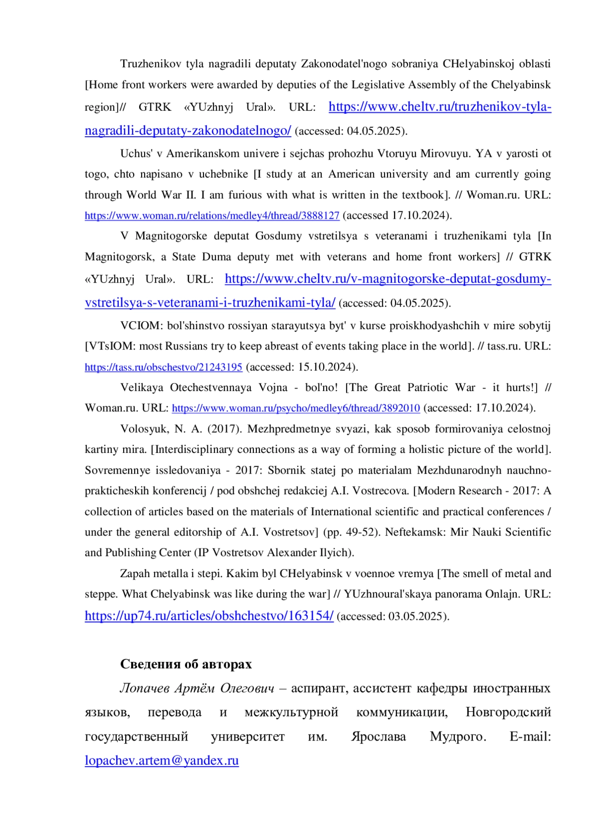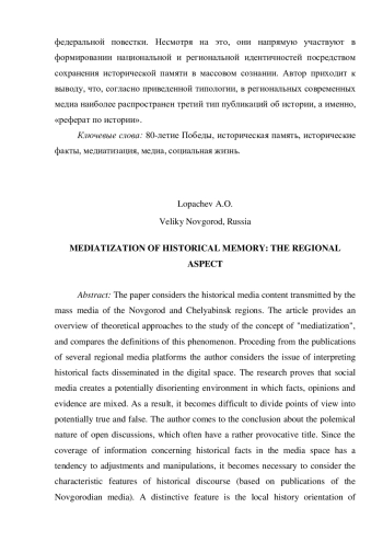 ЛОПАЧЕВ А. О. МЕДИАТИЗАЦИЯ ИСТОРИЧЕСКОЙ ПАМЯТИ: РЕГИОНАЛЬНЫЙ АСПЕКТ // РОССИЙСКАЯ ШКОЛА СВЯЗЕЙ С ОБЩЕСТВЕННОСТЬЮ. 2025. № 37