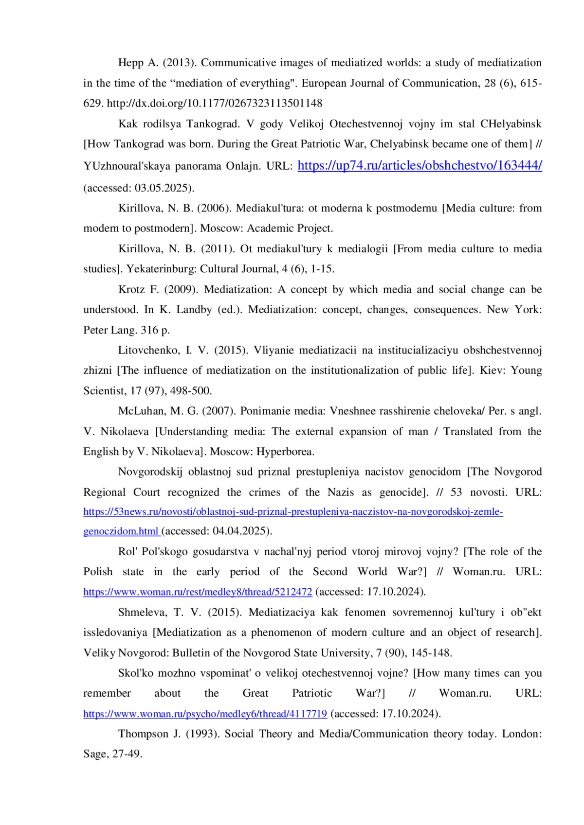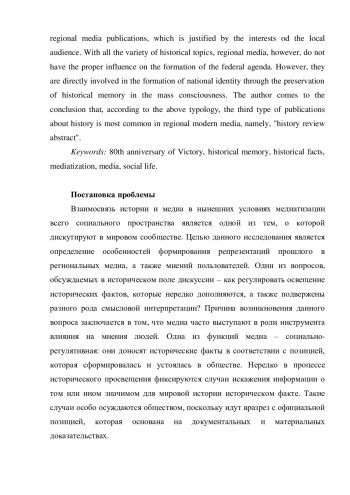 Статья: МЕДИАТИЗАЦИЯ ИСТОРИЧЕСКОЙ ПАМЯТИ: РЕГИОНАЛЬНЫЙ АСПЕКТ (2025)